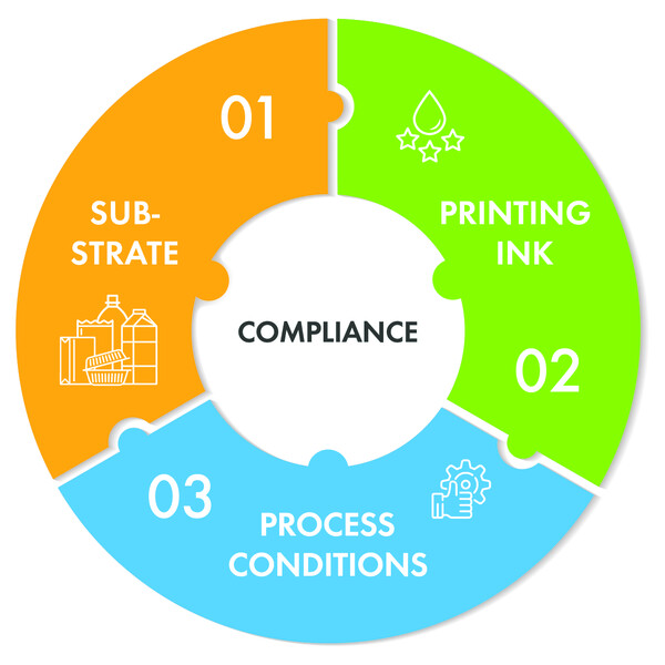 There is no single ink on the market that is universally suitable for all food packaging. Compliance must always be assessed using the finished, printed food contact material as migration is influenced by the substrate itself, the ink and process conditions (see chart 4).